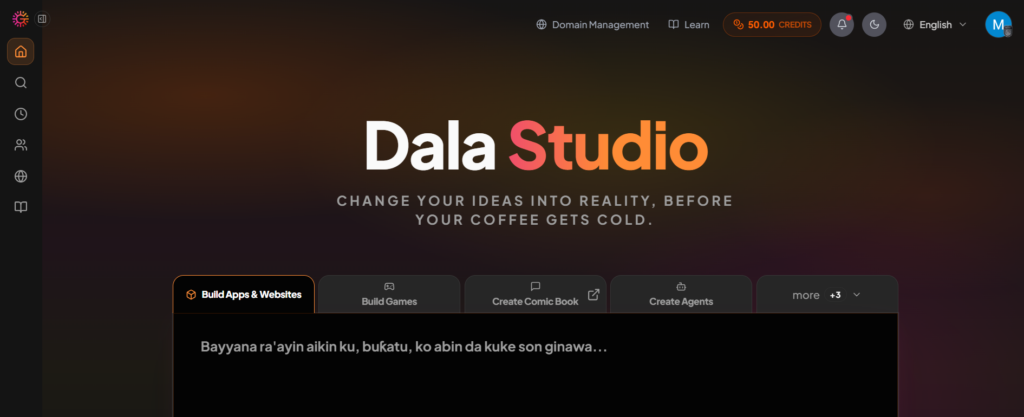 Whether you prefer a clean light interface or a dark focused workspace, you can switch themes anytime. The theme only changes how Dala looks for you — it does not affect your project.