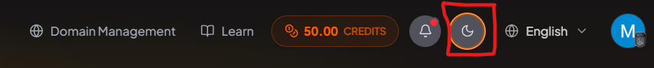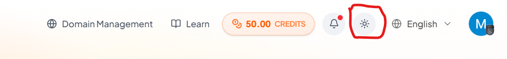 To change the theme, click the sun icon or moon icon at the top of the screen. This will instantly switch between light mode and dark mode.