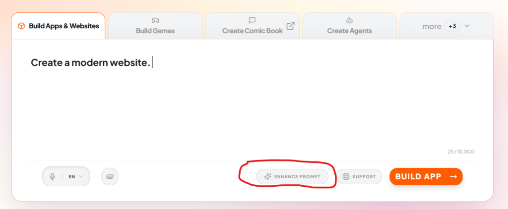After typing your prompt, click the Enhance My Prompt button.